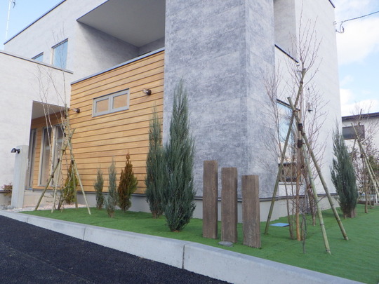 外構内容:駐車場、フェンス、建物まわり、植栽、ウッドデッキなど