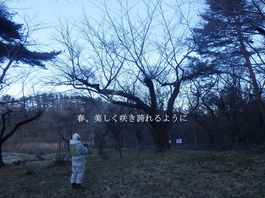 八戸市内の公園に植えられている桜の健康維持と美しい花を咲かせるための準備として、石灰硫黄合剤(殺虫・殺菌効果)という薬剤を散布してきました。