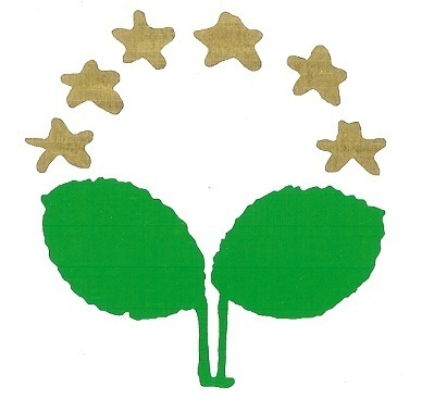 大地の緑(造園業)が末永く続くように、光り輝く星(すばる)に願いを込めたイメージをデザインしたものです。
